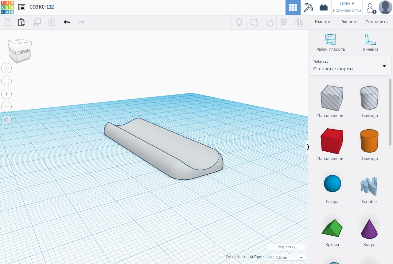 Из-за формы корпуса дозиметр может укатиться и упасть на пол, поэтому сделал в Tinkercad простую подставку.