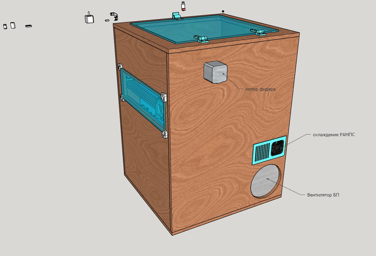 Привет народ. Все закуплено и почти все распечатано. Скоро буду собирать. Как вам идея? Ось Z - система полиспаст. X,Y на роликах и конструкционном профиле. Корпус из 10 мм фанеры. Внутри БП и плата РАМПС с охлаждением.