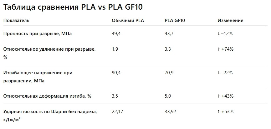 В итоге PLA GF10 – это более технологичный, менее хрупкий и гораздо более надёжный материал для функциональных деталей.