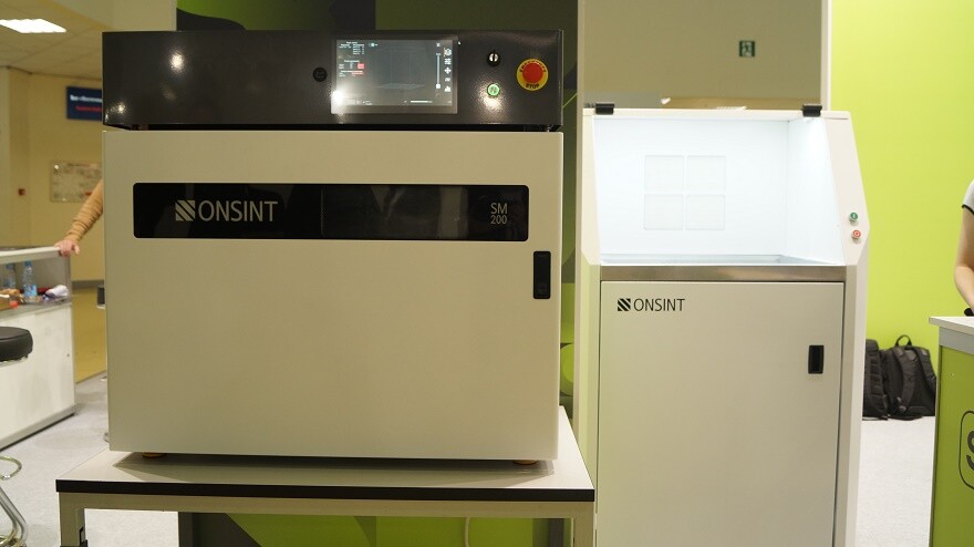 Компания «Онсинт» занимается разработкой 3D-принтеров по технологии лазерного-порошкового синтеза на подложке. На выставке команда показала систему селективного лазерного спекания полимерных порошков SM 200, а также анонсировала новую линейку 3D-принтеров для печати металлическими порошками по технологии селективного лазерного сплавления.