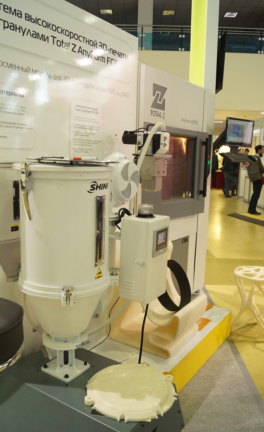 На нашем стенде был представлен широкий ассортимент пластиков и композитов — как филаментов, так и гранулированных материалов для крупноформатной 3D-печати.