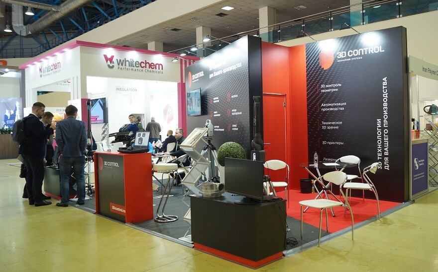 Стенд компании «РВ 3Д Технологии» — разработчика программного обеспечения и алгоритмов для бесконтактной трехмерной оцифровки физических объектов.