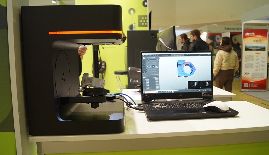 На фото виден настольный 3D-сканер Quant производства российской компании RangeVision. Такие системы используются в стоматологии, обратном проектировании и для контроля качества.