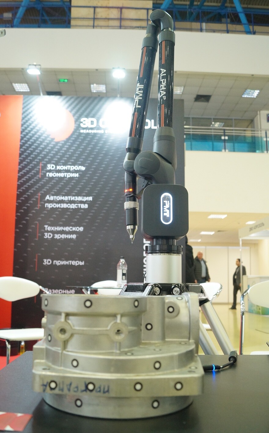 На фото показаны измерительные рука PMT Alpha и Hexagon Absolute Arm, а также 3D-сканер Hexagon StereoScan Neo по технологии структурированной светодиодной подсветки.