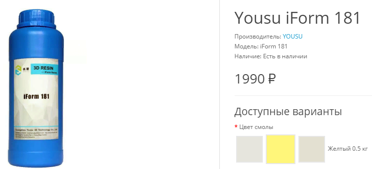 Как видно, наиболее оптимальным вариантом для покупки является смола, представленная в интернет-магазине RK Gadget. Товар доступен в объеме 0.5л и 1л в двух цветах (желтый 0.5л, прозрачный 0.5л и 1л). В дополнении к этому, стоит отметить, что компания RK Gadget участвовала в создании смолы и контролирует соответствие качества продукции заявленным в стандартах требованиям наравне с производителем. Приглашаем Вас на сайт rkgadget.ru заказать смолу iForm 181 и самим убедиться в качестве продукта.