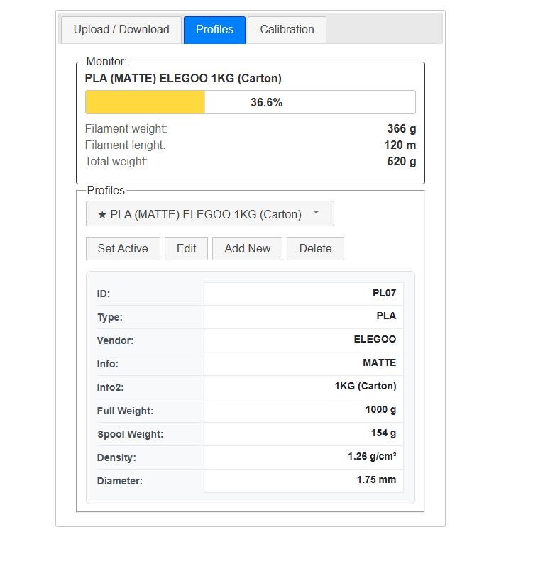 Профайлы хранятся в обычном csv файле, этот файл можно загрузить на комп, отредактировать в обычном текстовом редакторе или в Excel и закинуть обратно. В ESP32 csv файл хранится в SPIFFS