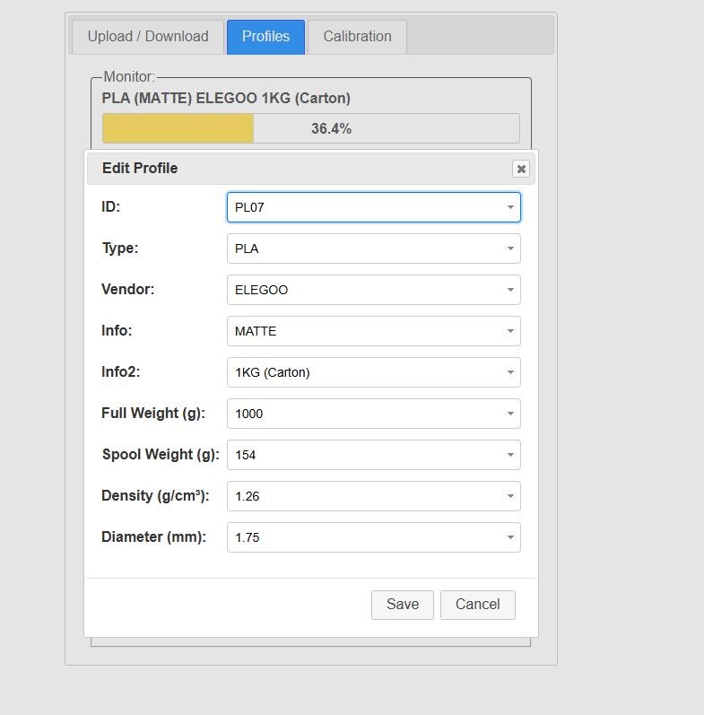 - система профилей т.е. на каждый филамент (тип/производитель/тип катушки) свой профиль