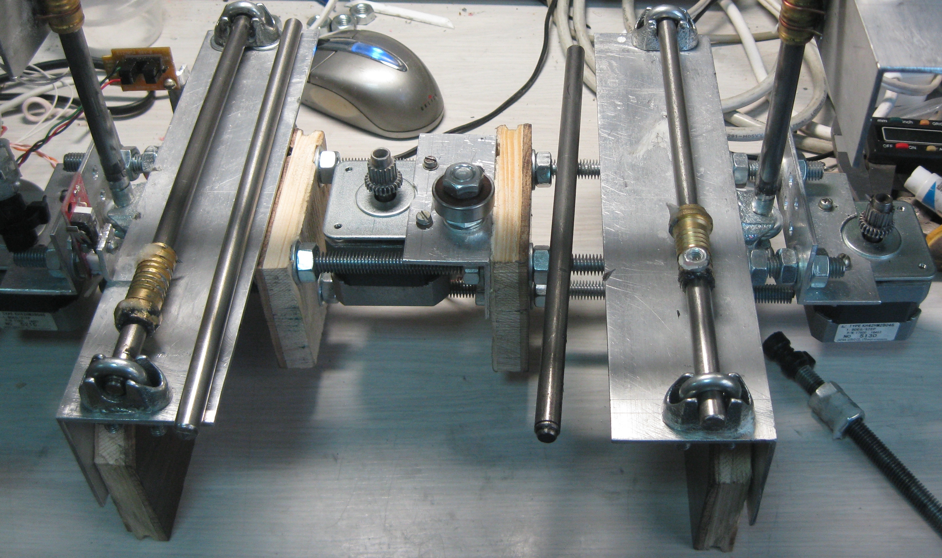 Ставил кусок уголка в тиски, прикручивал два крепления с осями и подтачивал крепления по необходимости для обеспечения паралельности в горизонтальной и вертикальной плоскости.