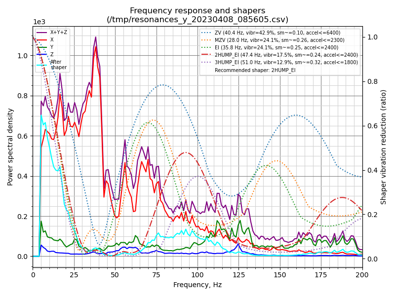 Резонансы примерно 50 Гц по осям, невысокие, механику признаю нормальной.