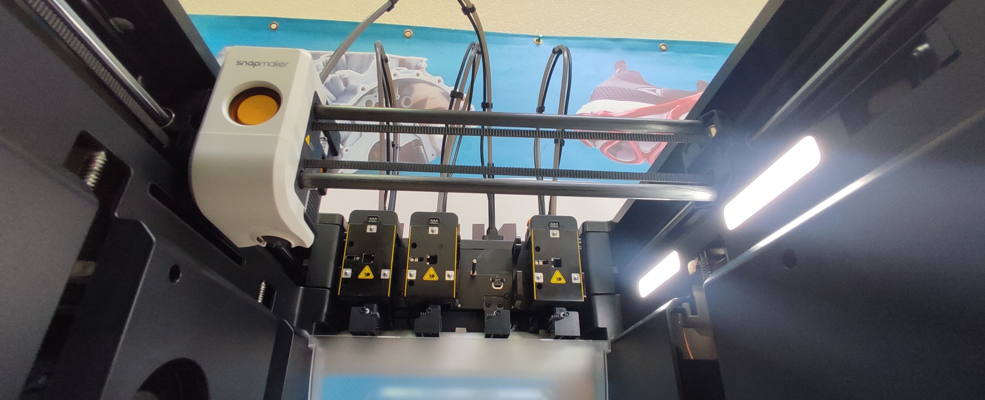 Система смены печатающих головок получила название SnapSwap. Ее особенность в переключении материалов кареткой, захватывающей одну из четырех предварительно разогретых печатающих головок, в которых уже находятся филаменты.