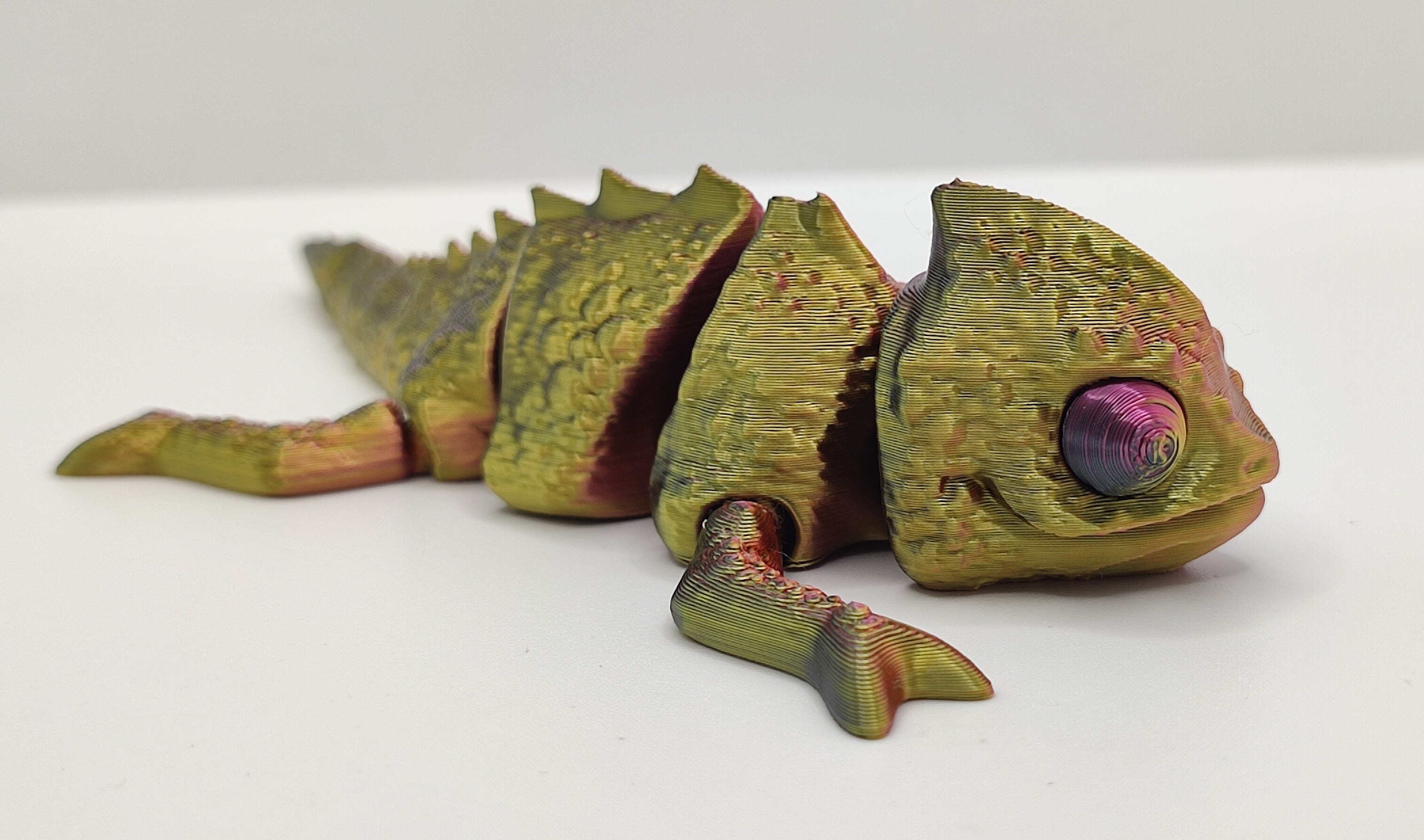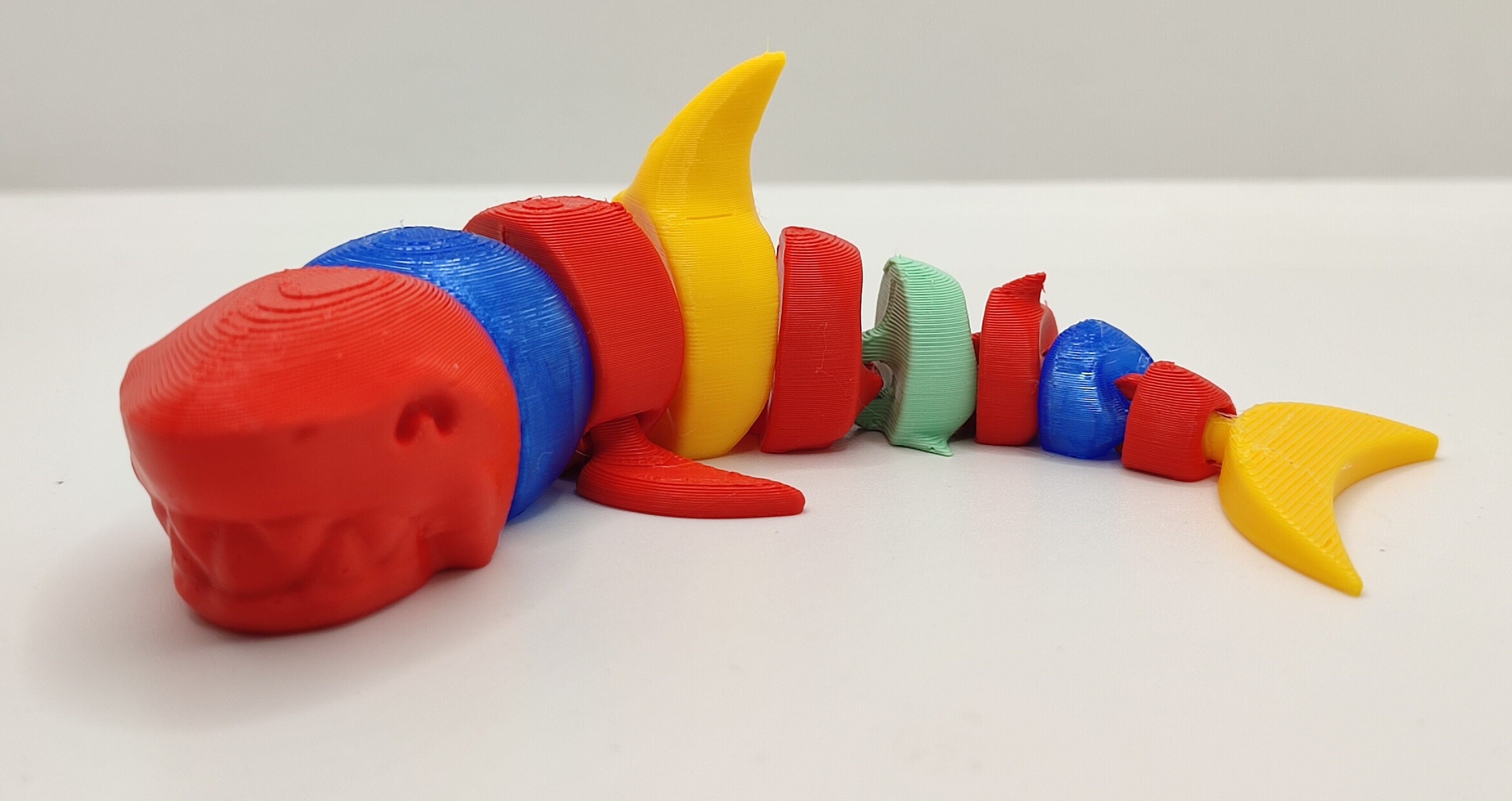 Раскрашиваем по-быстрому подвижную акулу и запускаем печать. Время печати — всего полтора часа. Та же печать на Creality, Bambu Lab и остальных принтерах со сменой прутка через системы AMS, CFS и прочие занимает от 7 до 9 часов. Печать на стандартных настройках слоями 0,2 мм, смотрим результат.