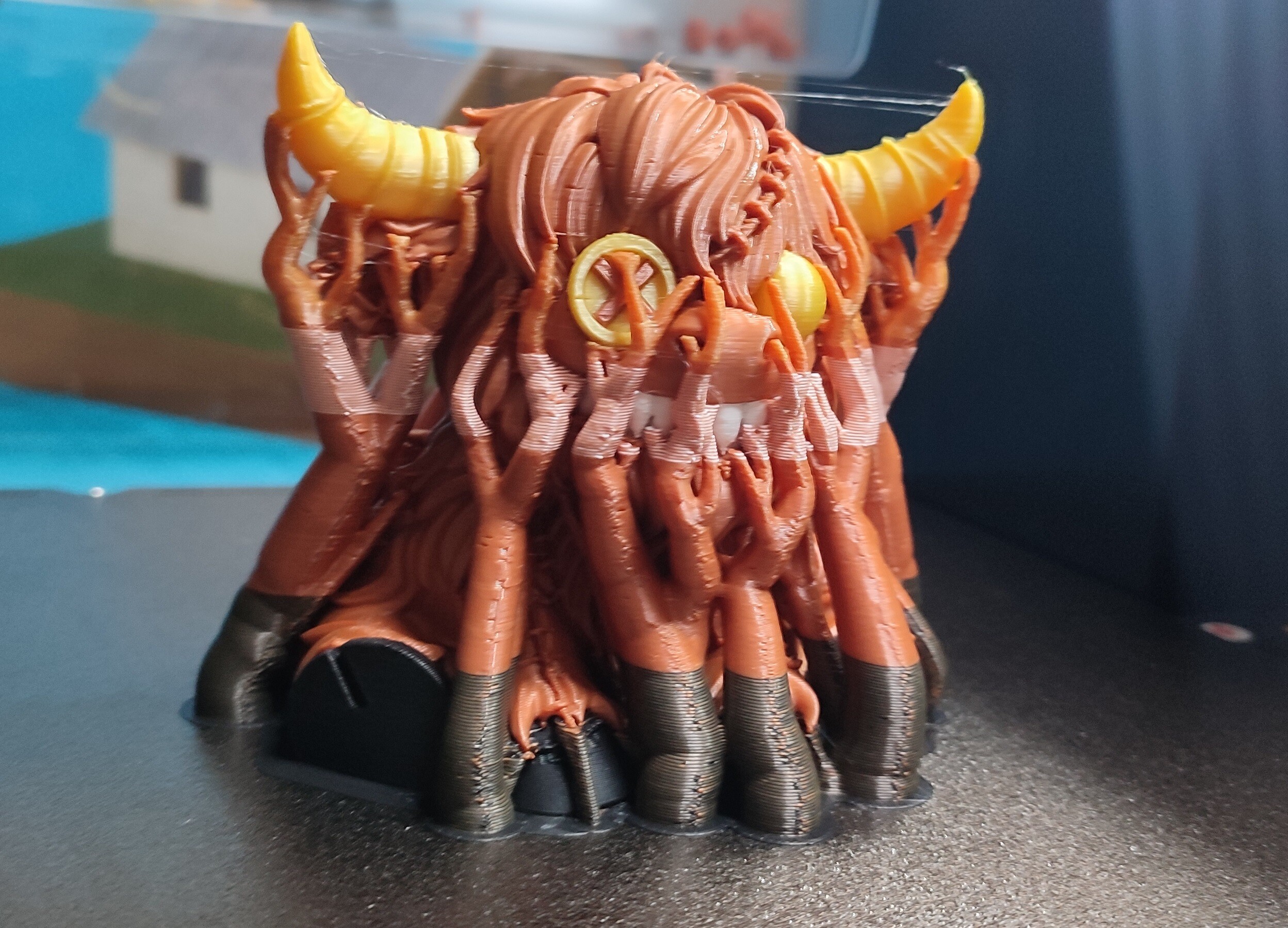 Еще один пример печати PLA трех цветов с поддержками.