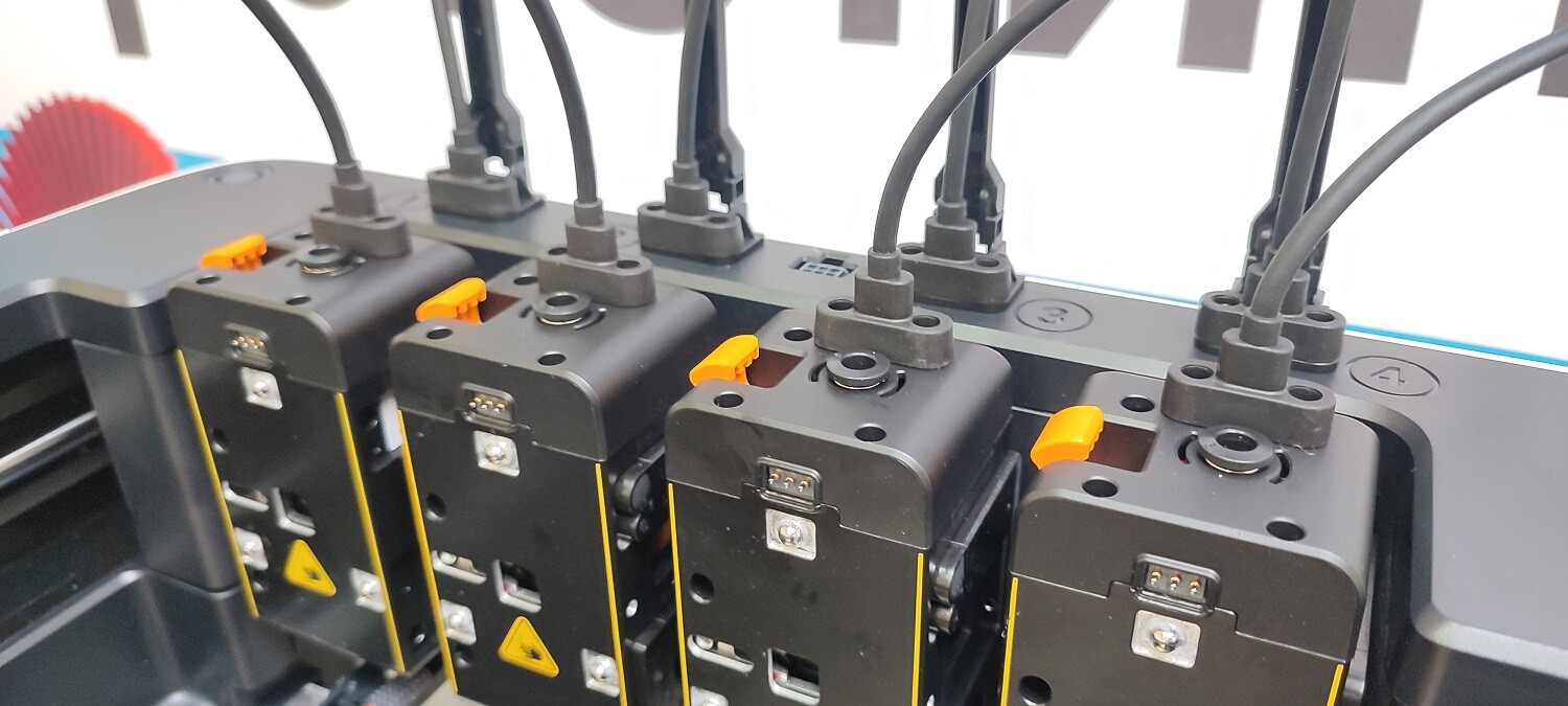 Преимущества системы в том, что при цветной печати практически отсутствуют отходы, а время на смену филамента сокращено до минимума. Основным результатом является значительно меньшее время печати, чем в принтерах с системами смены филамента — AMS, СFS и прочими, и это не говоря про экономию пластика.