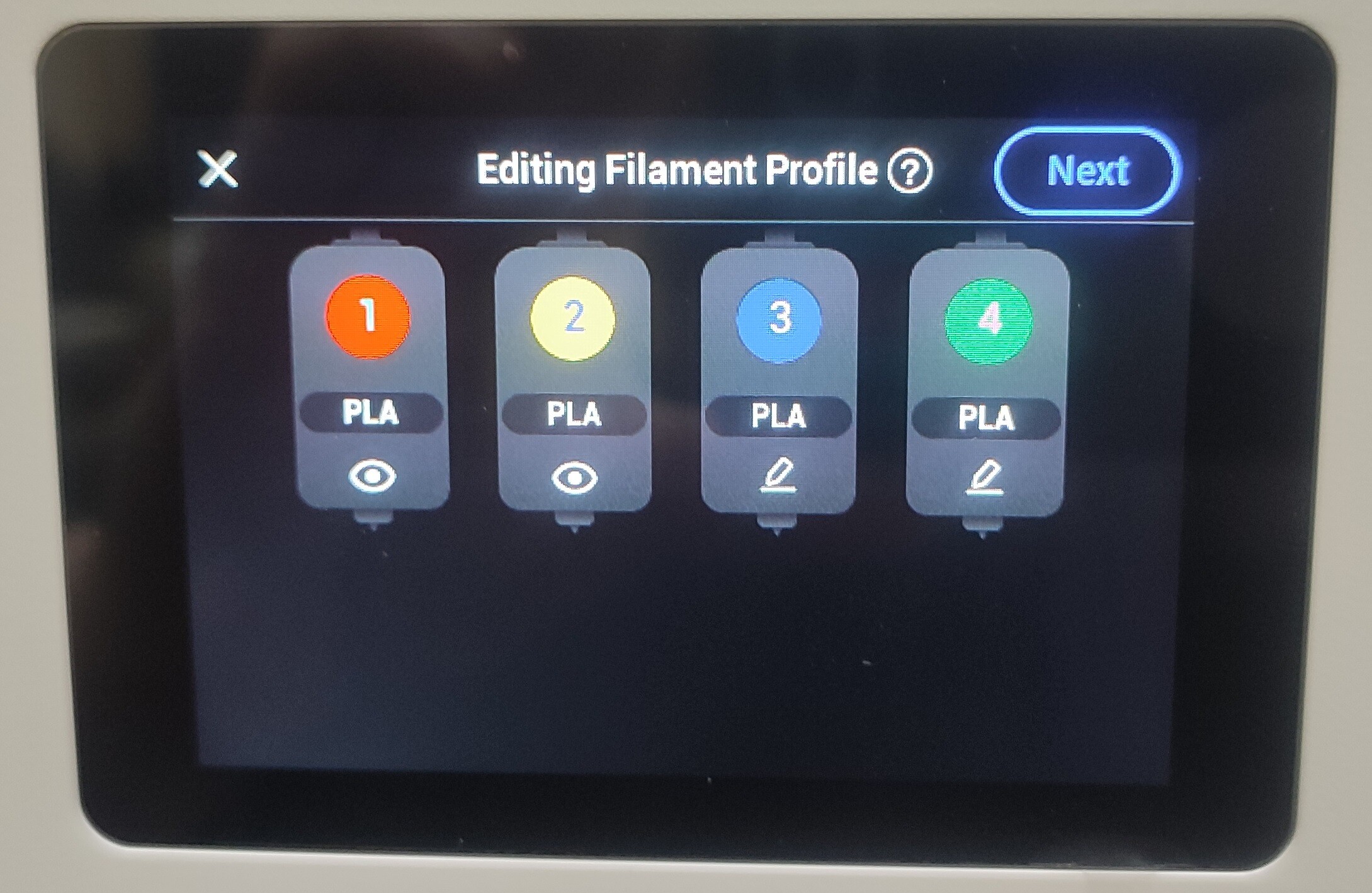 Далее загружаем филаменты. Для катушек без RFID-меток указываем тип материала.