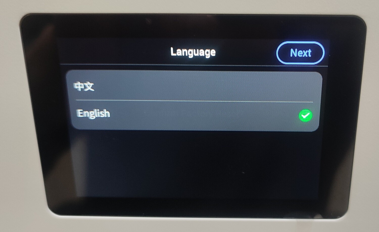 После сборки и включения принтер предлагает запустить различные виды калибровок и подключиться к Wi-Fi. Локализация пока отсутствует, на выбор предлагаются два языка — английский и китайский.