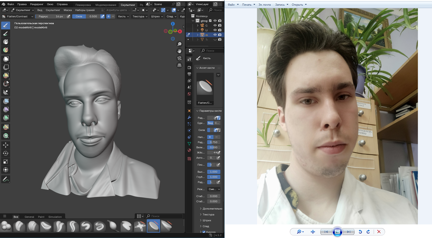 На фото слева вы можете увидеть полученную 3д модель, справа исходная фотография.