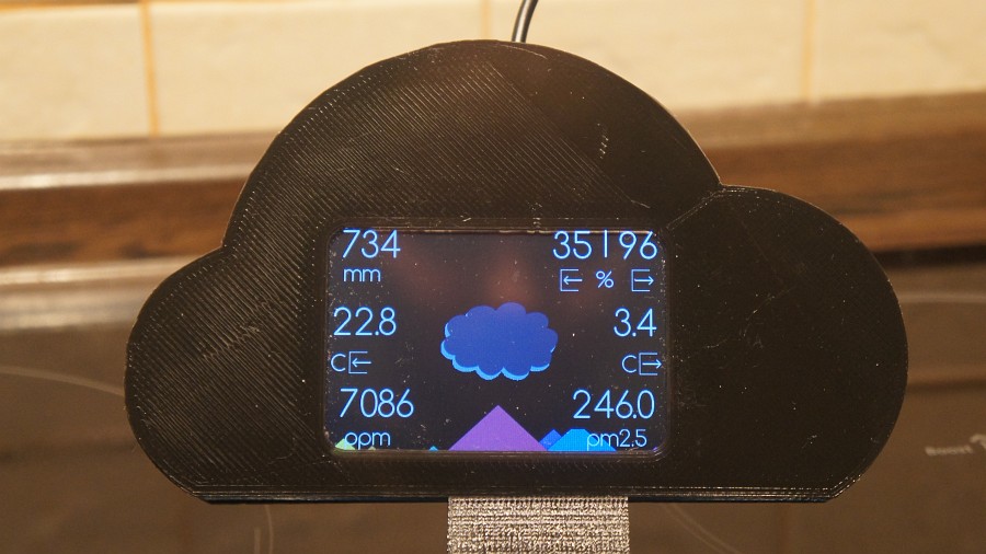 Конечно, мне не удалось добиться идеально ровной фактуры по всей площади моделей, но издалека это не особенно заметно. Как и шерстинки с пылью, видные камере.Пока что все изделие покоится на очень классной подставке-трансформере для смартфонов. Потом (может быть) придумаю что-то еще, хотя очень хочется повесить это облако на какую-нибудь стену. Что меня останавливает? По какой-то нелепой причине нет розетки на стене именно там, где бы того хотелось.Для тех, кто ощущает какую-то незавершенность, сообщаю, что метеодисплей - это не совсем метеостанция, а продукт сочетания двух довольно специфических факторов. Буквально: упомянутый выше дисплей Nextion мне дали на обзор, а дома трудился домашний контроллер, изготовленный таким же непонятным нормальному инженеру путем, как и все, что выходит из моих рук. Вот их-то я и учил работать вместе.
