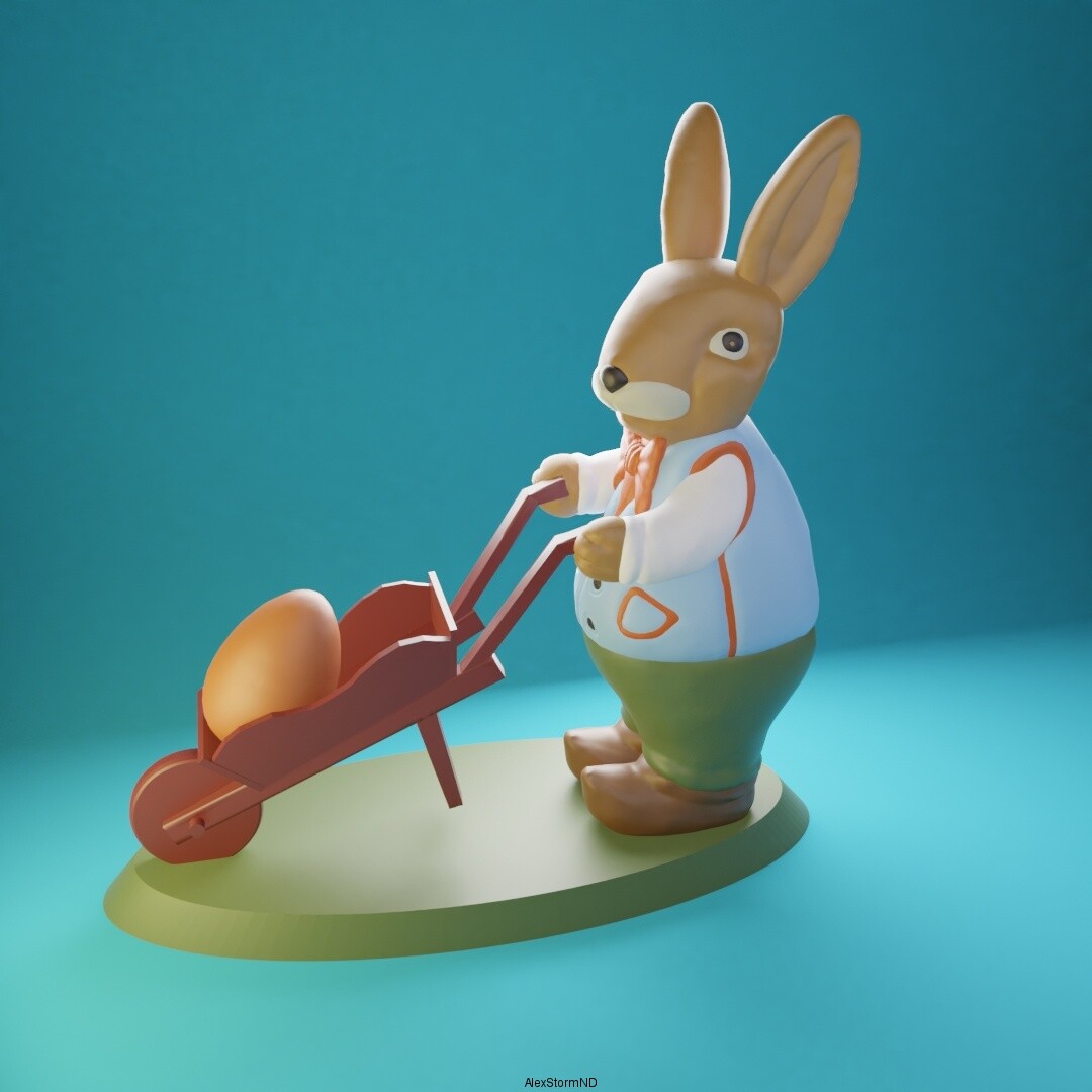 Рендер Пасхального кролика Роберта и яичной тележкиСсылка на модель: https://cults3d.com/en/3d-model/art/easter-bunny-robert-with-egg-cartдругие модели по данной тематике:Пасхальный кролик Роберт https://cults3d.com/en/3d-model/art/easter-bunny-robert