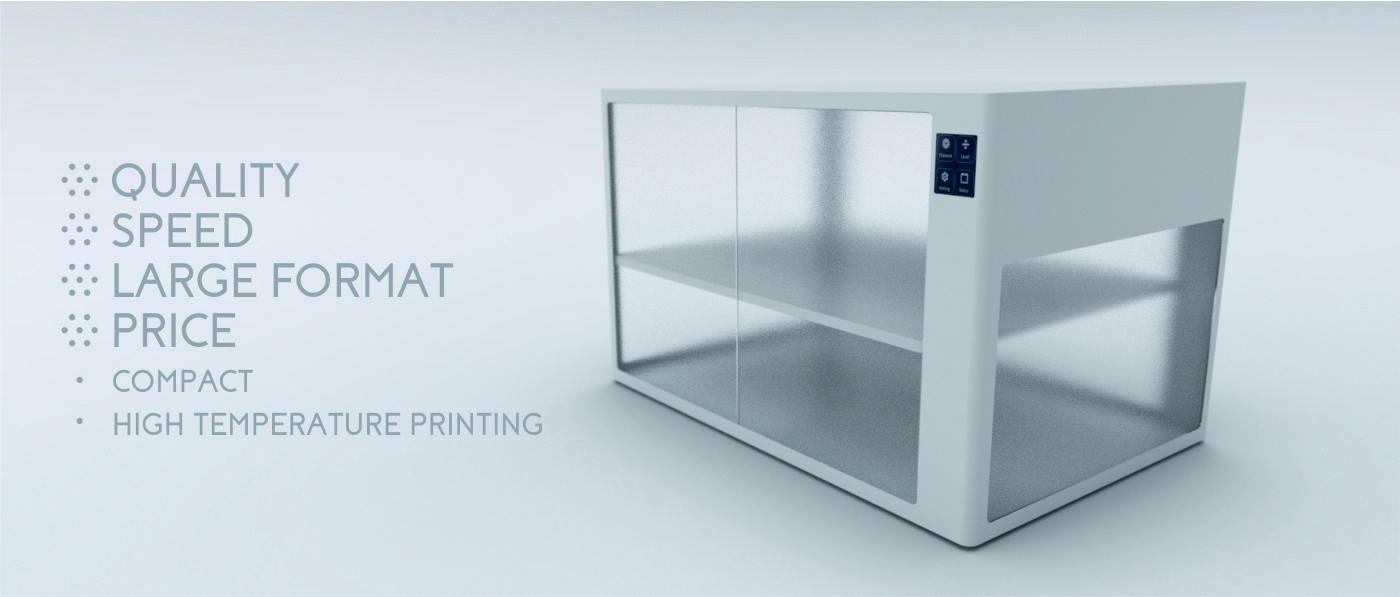Существующая механика принтера не позволяет значительно увеличить скорость и область печати, по объективным причинам. Действуют законы физики.) При увеличении скорости и размера печати, увеличивается инерция при позиционировании экструдера. Что приводит к необходимости увеличения жёсткости рамы принтера, повышению мощности двигателей. Это в свою очередь приводит к необходимости использования качественных направляющих, и других сопутствующих компонентов. Что в свою очередь ведет к удорожанию принтера.
