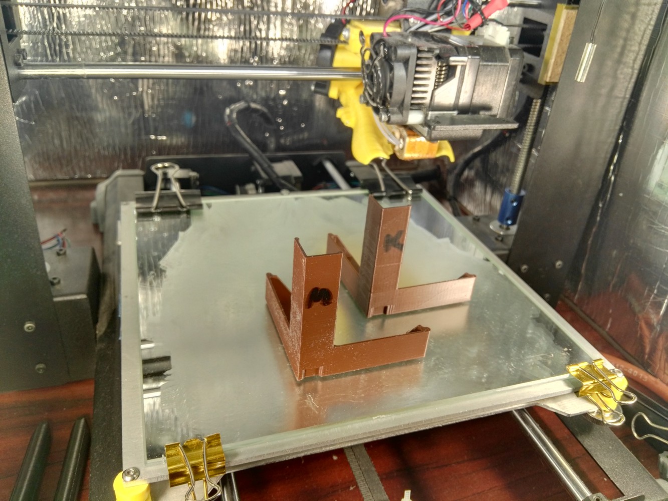 Немного покрутил крепление рамы и направляющие, немного изменил шаги на мм, все в пределах разумного, без фанатизма, близко к реальности. Не думаю, что кто-то использует принтер с отклонением осей больше нескольких градусов. В качестве тестовой модели взял не банальный кубик, а деталь из текущего проекта. Мне она показалось более подходящей чем куб - одинаковая длинна по осям 60мм, все грани под прямым углом, нет лишнего расхода пластика.