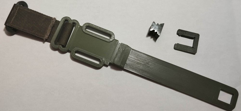 Как минимум неделю занял поиск способа крепления к ножнам клипсы, которая используется как для крепления шлеек подвеса на ремень, так и для быстрого крепления на систему MOLLE. Было отработано, распечатано и забраковано 4 варианта. В дело пошел 5-й вариант.