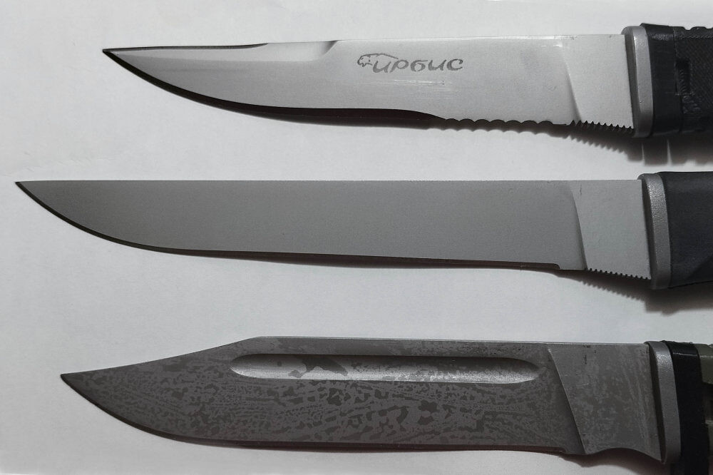 В итоге я получил относительно универсальные ножны, в которых можно носить ножи с толщиной обуха 3.4 мм, шириной клинка до 25 мм и длиной до 150 мм, например такие: