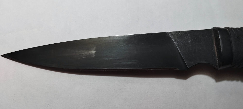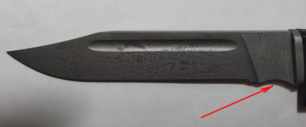Зеленая рукоять тестового ножа была изготовлена 3 года назад и имеет явные косяки. Однако она позволяет за 2 минуты снять ее без применения инструмента и заменить больстер на гарду, превратив хозбыт в холодняк буквально на коленке, а также наеборот.