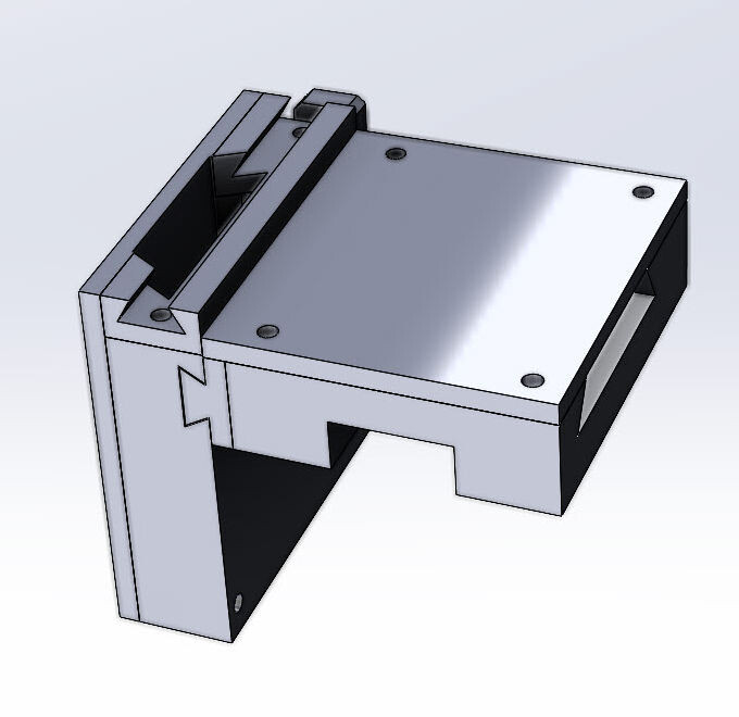 Планшет с диагональю в 10'' в эти габариты входит легко. Дальнейшая проработка выявила, что достичь требуемой при этом высоты верхнего ограничителя в 120 мм без заморочек не удастся. Нет, вообще-то можно, но выглядеть будет так себе.