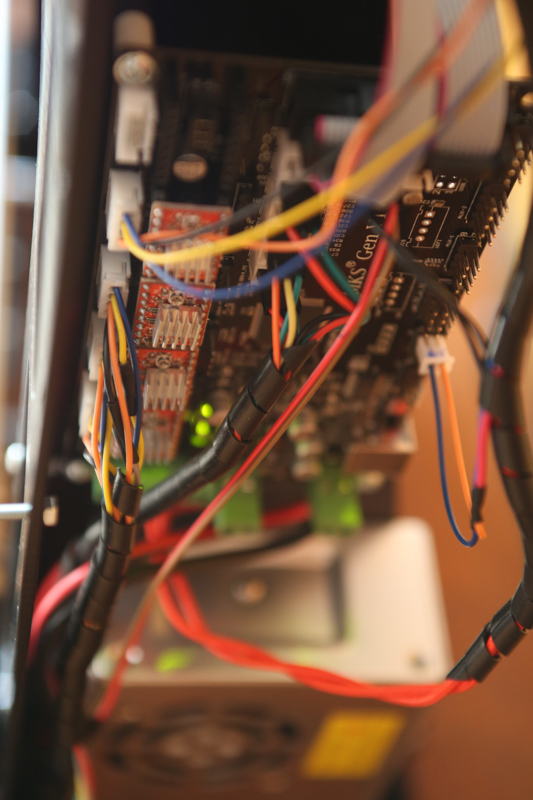 Ну все хорошо, что хорошо заканчивается)) В итоге принтер все же заработал, но опять же с оговорками. Т.к. БП выслали на 12 вольт, а хотэнд рассчитан на 24 вольта, то нагреть его выше 185 градусов не получается. Про нагрев печатного стола вообще молчу. Причем до 185 градусов получилось нагреть после того как обработал нагревательный элемент термопастой. А так грел до 162 градусов в течение 43 минут)) Просто не знал тогда, что хотэнд на 24 вольта.Ну и как в итоге выглядит принтер. Еще раз повторю, что для LCD есть штатное крепление, но я этот момент не учел при сборке, а разбирать лень, поэтому закрепил так)).
