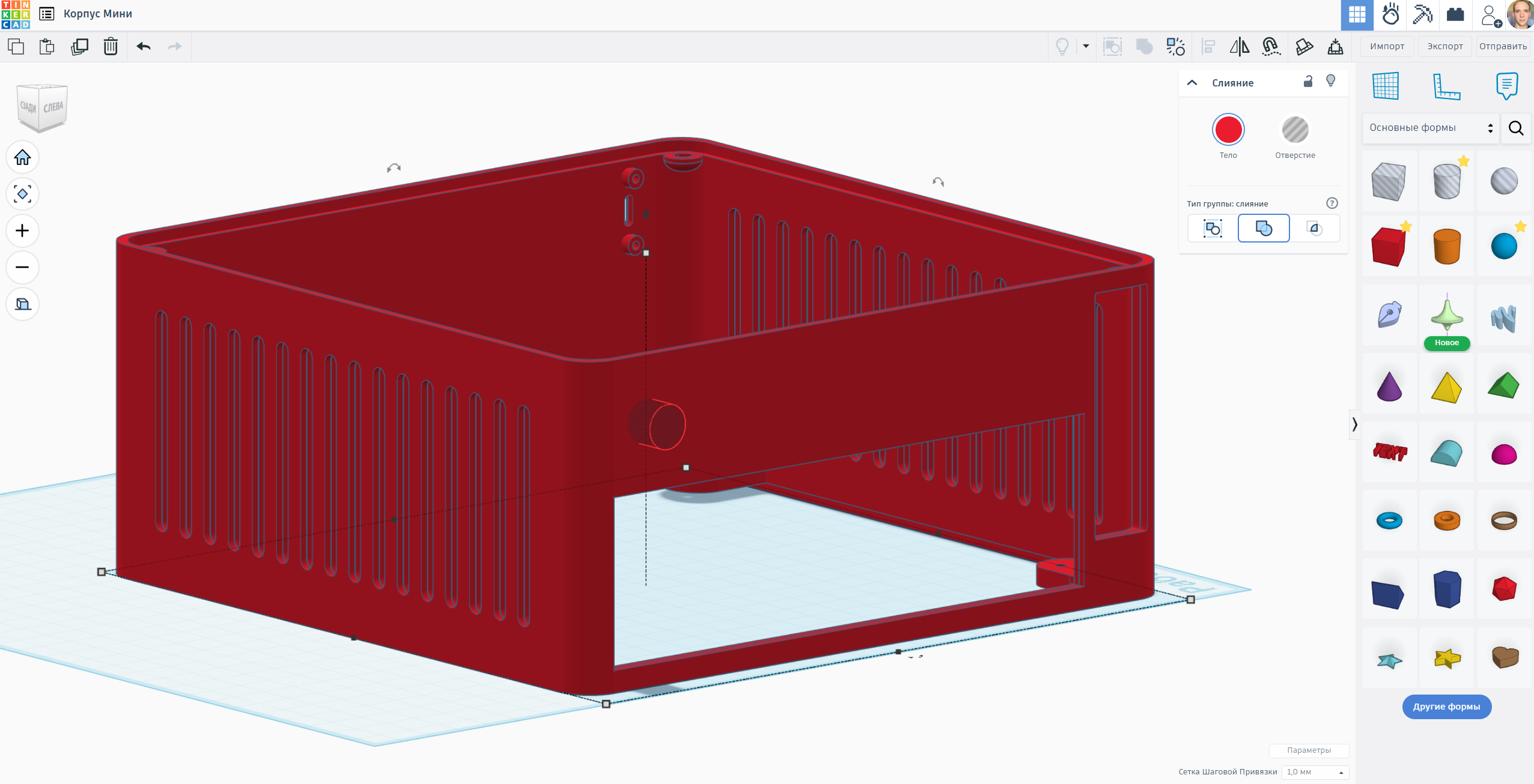 Оставалось дело за малым, разработать и напечатать корпус. Учитывая что в делах 3d моделирования я профан, моу путь лежал на любимый мной Tinkerkad)