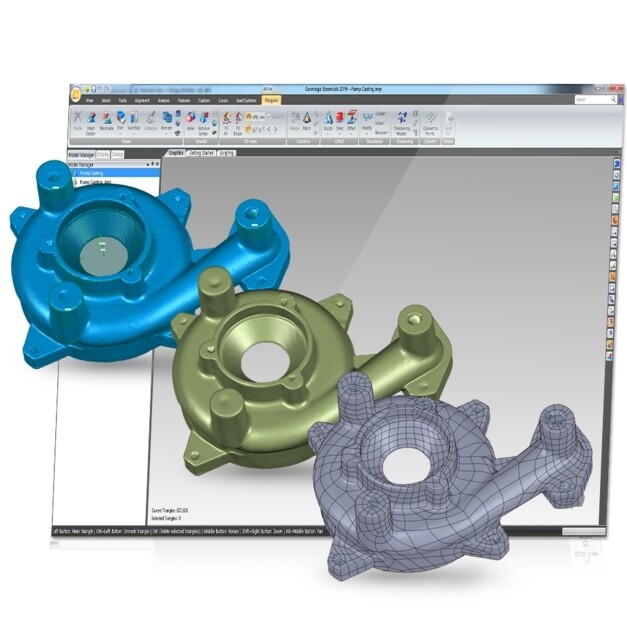 Geomagic® Essentials ™ – удобная и понятная программа для трансформирования данных оцифровки в основные форматы CAD. Работая с этим приложением, можно изменять, делить на составляющие, объединять объекты, переводить модели в твердотельные.