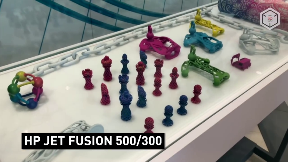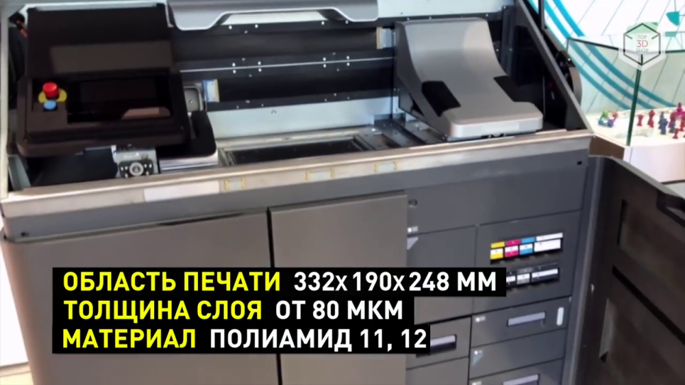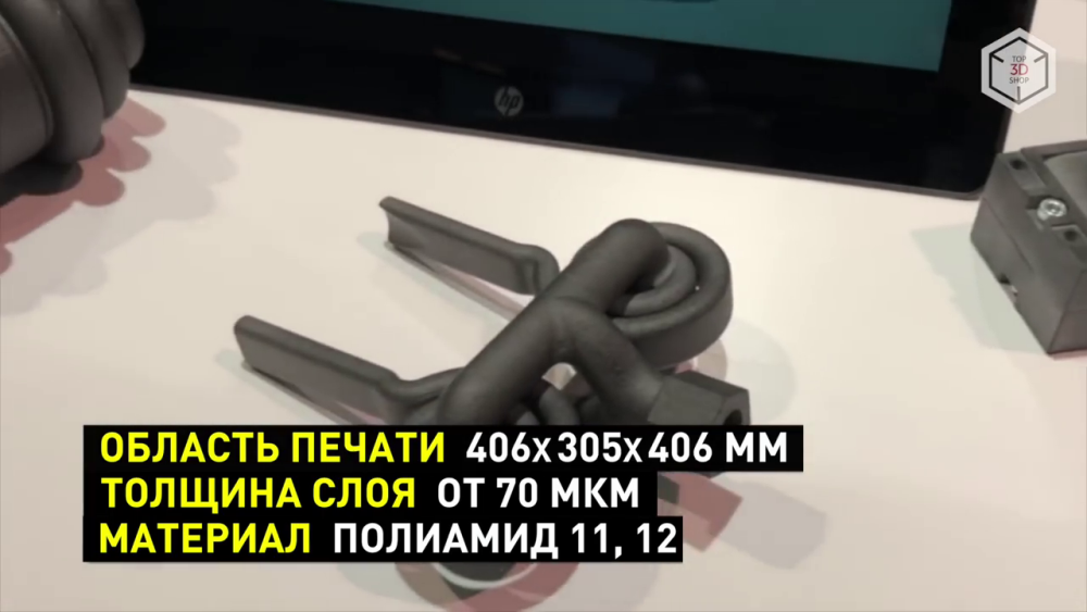 Помимо Metal Jet, в выставочном павильоне компании «Хьюлетт-Паккард» были представлены машины из линейки Jet Fusion — промышленная SHS-установка Jet Fusion 4200 и цветной SLS-принтер серии 500/300.Технология SHS (selective heat sintering — “выборочное тепловое спекание”) схожа с SLS. Основное отличие — вместо лазера используется тепловая печатающая головка. По данным «Хьюлетт-Паккард», скорость печати Jet Fusion 4200 превосходит SLS-решения конкурентов в 10 раз.Скорость, простота в использовании и относительно невысокая стоимость — от 200 тыс. долларов, позволяют использовать Jet Fusion 4200 как замену установкам для литья пластмасс. Материал для печати — полиамиды “нейлон 11” и “нейлон 12”. ]HP Jet Fusion 500/300Характеристики