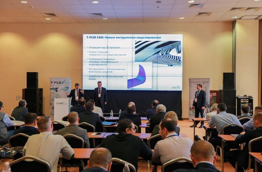 В рамках конференции были представлены доклады о практиках построения цифровых предприятий на основе систем комплекса T‑FLEX PLM. Об этом говорили представители многих ведущих российских предприятий в областях авиастроения, ракетостроения, судостроения, общего машиностроения и ОПК.