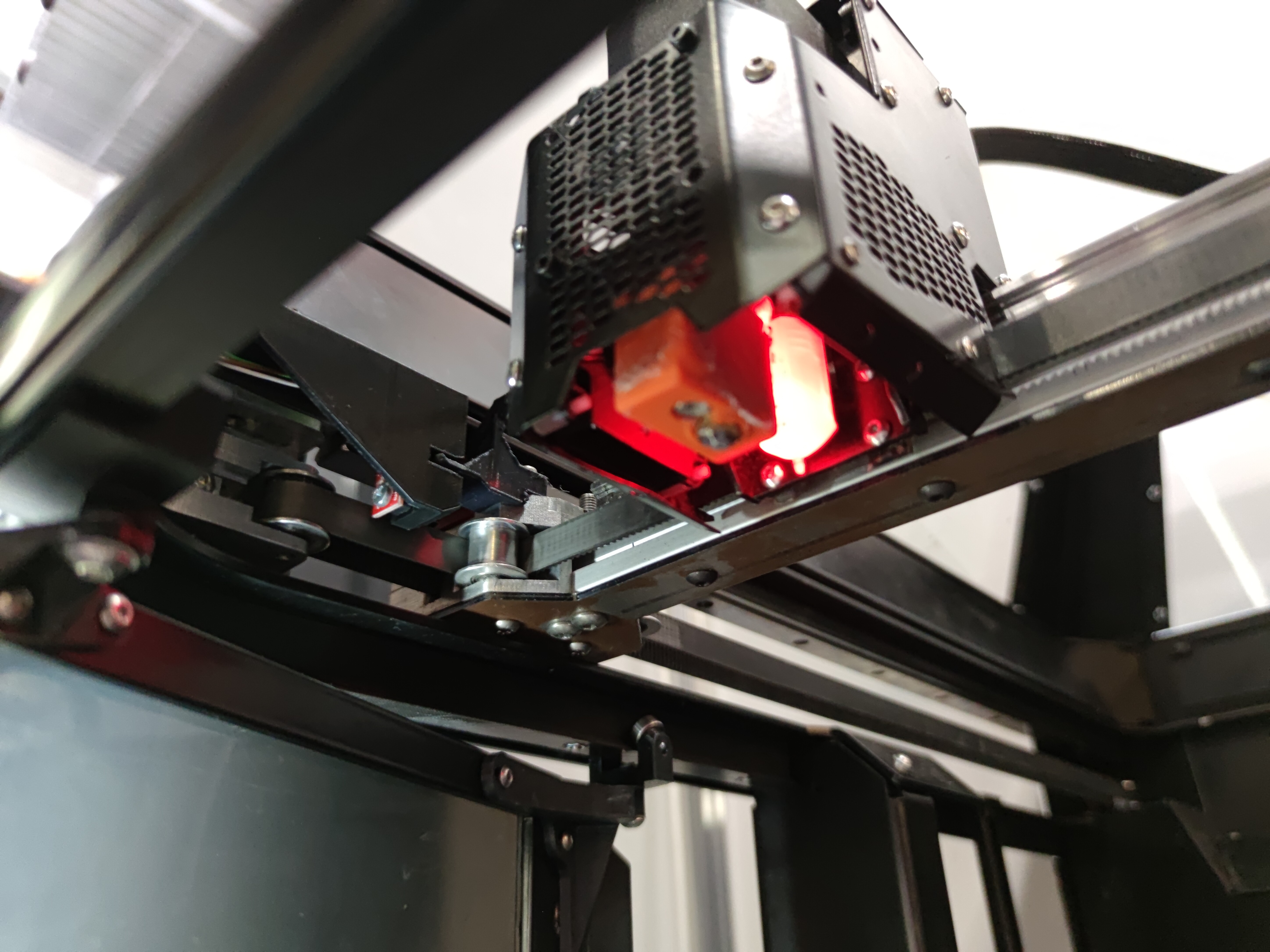 Выглядит прекрасно. Директ экструдер, H-bot кинематика на валах. Ось з на роликах (креалити это дело любят). Даже подумали над тем, как красиво пластик без трубки подавать. Но и минусы (для себя) я там некоторые увидел, такие как отсутствие ремня синхронизации по з, а концевик там один. Фидер mk10, что для меня не лучшее решение, ну и по мелочи.