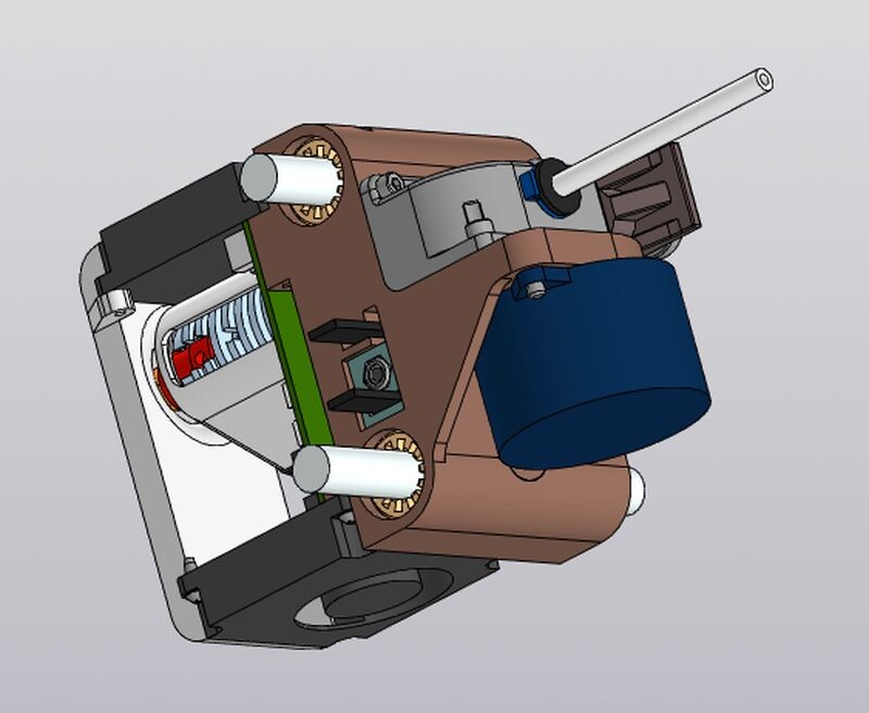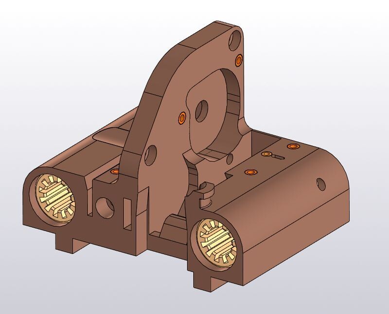 К сожалению, за прошедшие годы архив с проектом самодельной головы канул в лету. Так что пришлось все начинать с нуля, но с учетом полученных за это время знаний и некоторого понимания процесса печати. Разумеется, сразу же решил делать директ-экструдер.