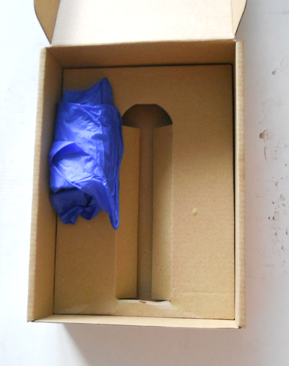 Флакон упакован в коробку, там же лежит пара перчаток.