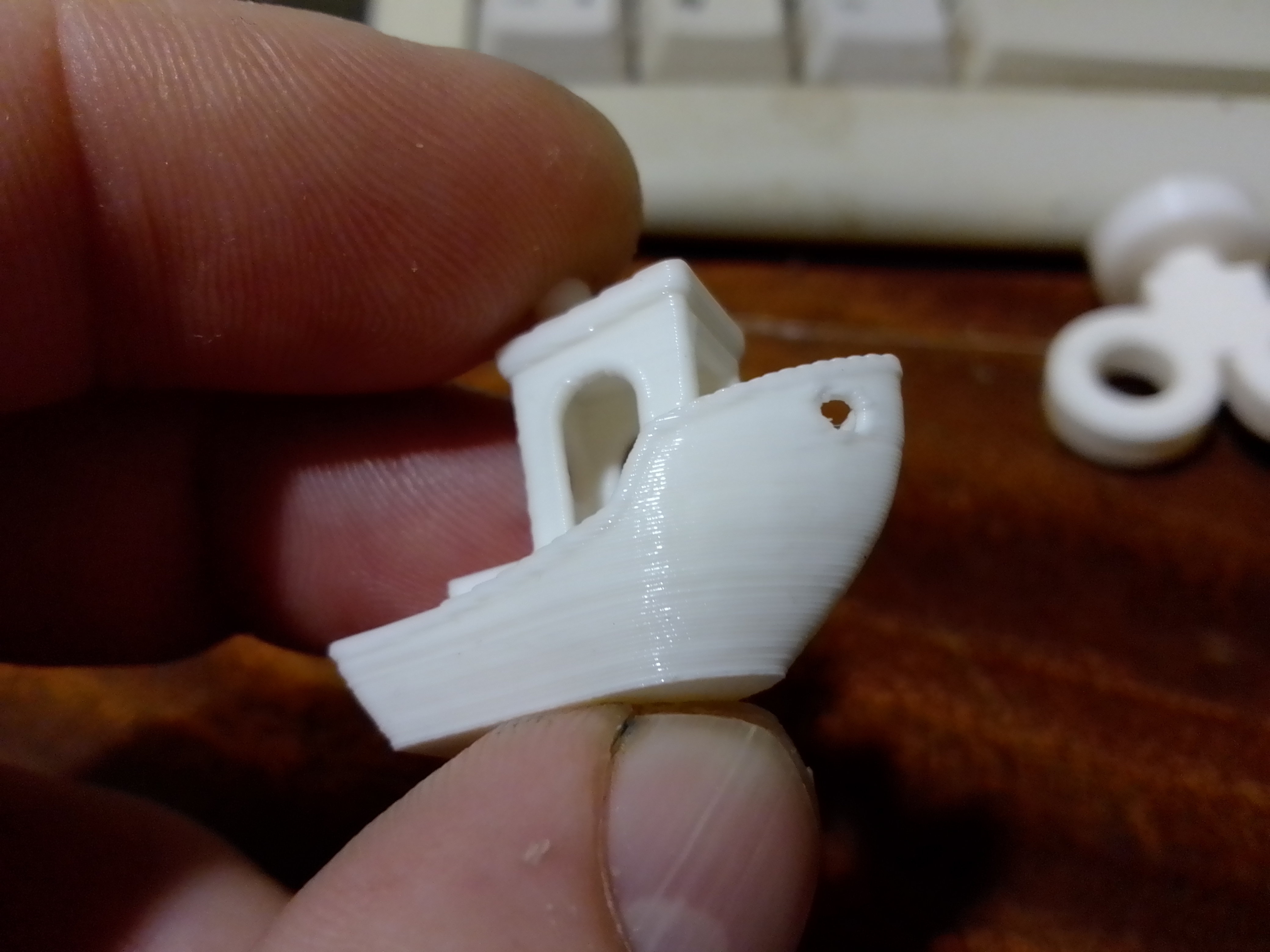 Подводя некоторые итоги. Ультикинематика печатает хорошо. "Ременная" ось Z работает. Точность этого безобразия вполне приемлемая. Жесткость на уровне. Во всяком случае на скоростях 100мм/с дефектов не наблюдается. Но вот электронику лучше 32бит. Иногда на сложных участках чувствуется, что линия легла с "отставанием" (сложно как-то объяснить). И с учетом, что следующий слой лег правильно, это не пропуск шага.