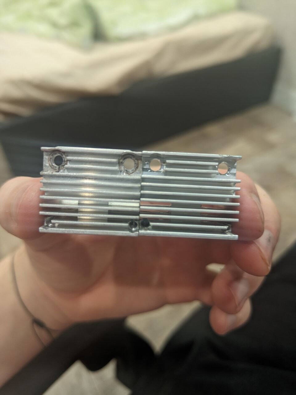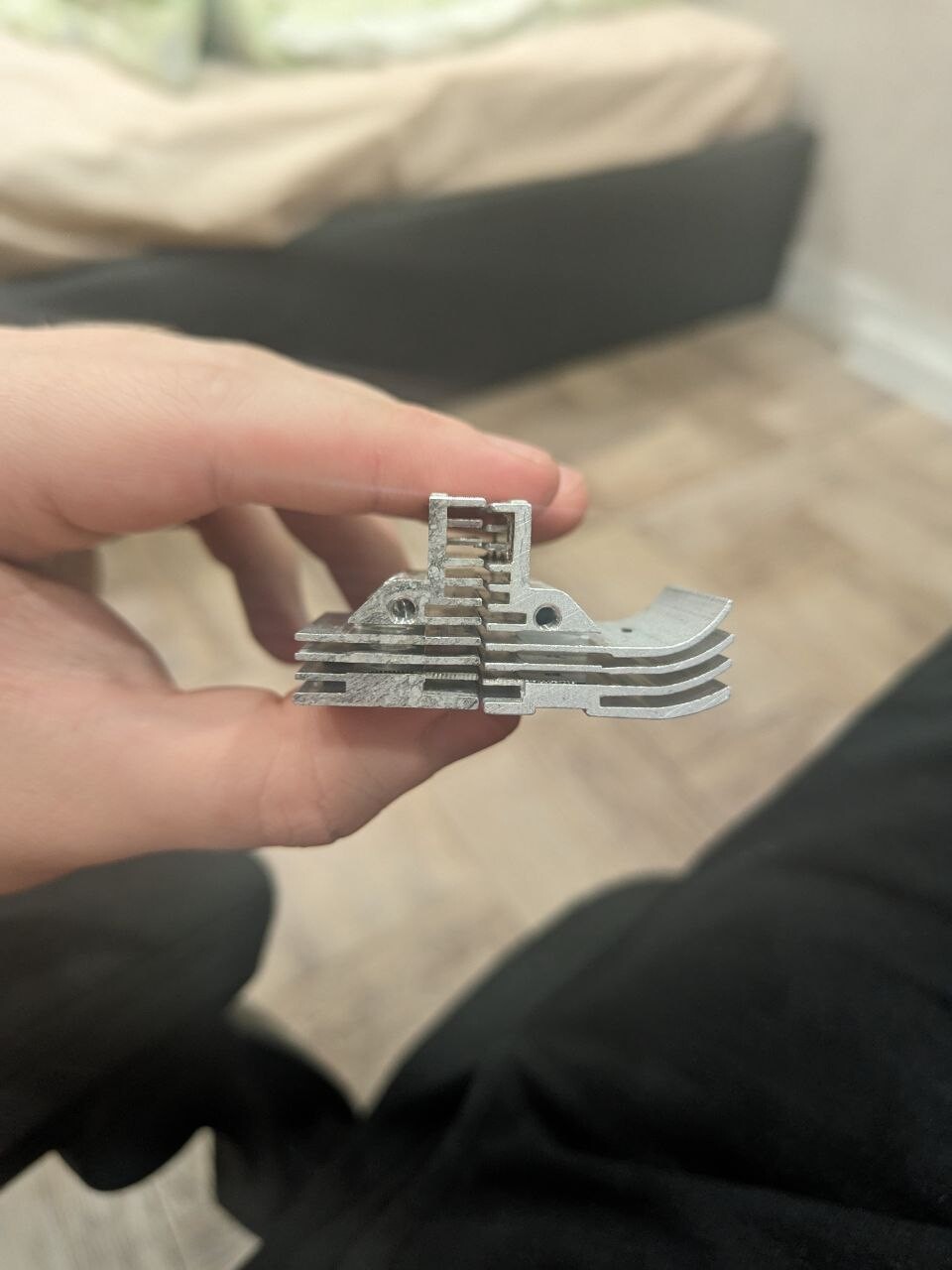 Могу сделать вывод из наблюдения: К1 юникорн сделан из алюминия, а К1 вулкан - из какого-то сплава металлического. Возможно, оба из алюминия и юникорн стал "тусклым" по прошествию работы и температурных перепадов, но кажется что радиатор К1 вулкан сделан из более качественного сплава, а потом Креалити решила "оптимизировать" процессы свои и начала делать такое поколение.