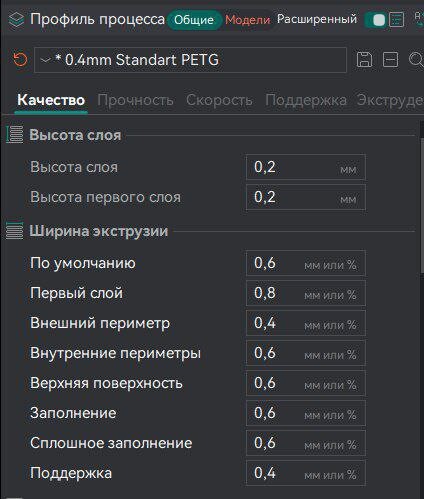 Филамент: ERYONE Standart PETG, перед тестом его просушил при температуре 70℃ на 3-4 часа