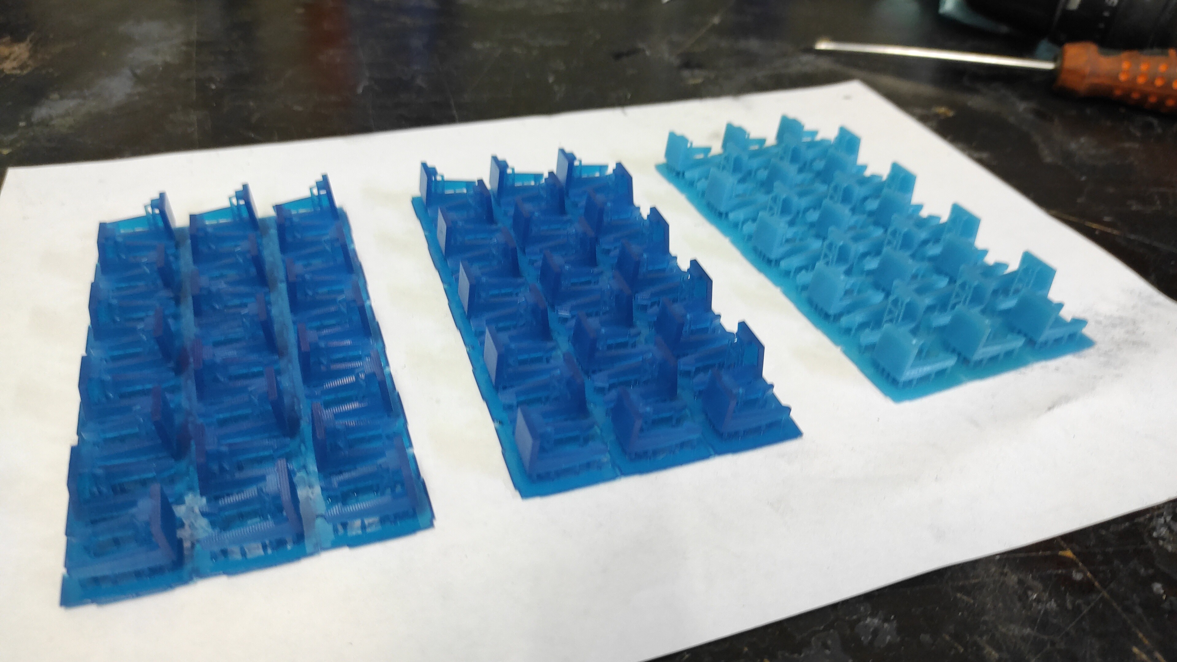 С покупкой Elegoo Mars pro работа пошла в гору, несмотря на разрешение матрицы 2к (сперва очень боялся) детализация зашкаливала по сравнению с FDM печатью. Печать мелких деталей (в основном небольших шестеренок) вышла на совершенно новый уровень, начались эксперименты со смолами. Для моих целей идеально подошел eSUN Hard Touch Resin. Пробовались и смолы на основе PLA, и стандартные модельные смолы, и так называемые стоматологические, в итоге остатки этих полимеров пошли на печать всяких фигурок. Параллельно повышал навыки в 3д-моделировании в SolidWorks.