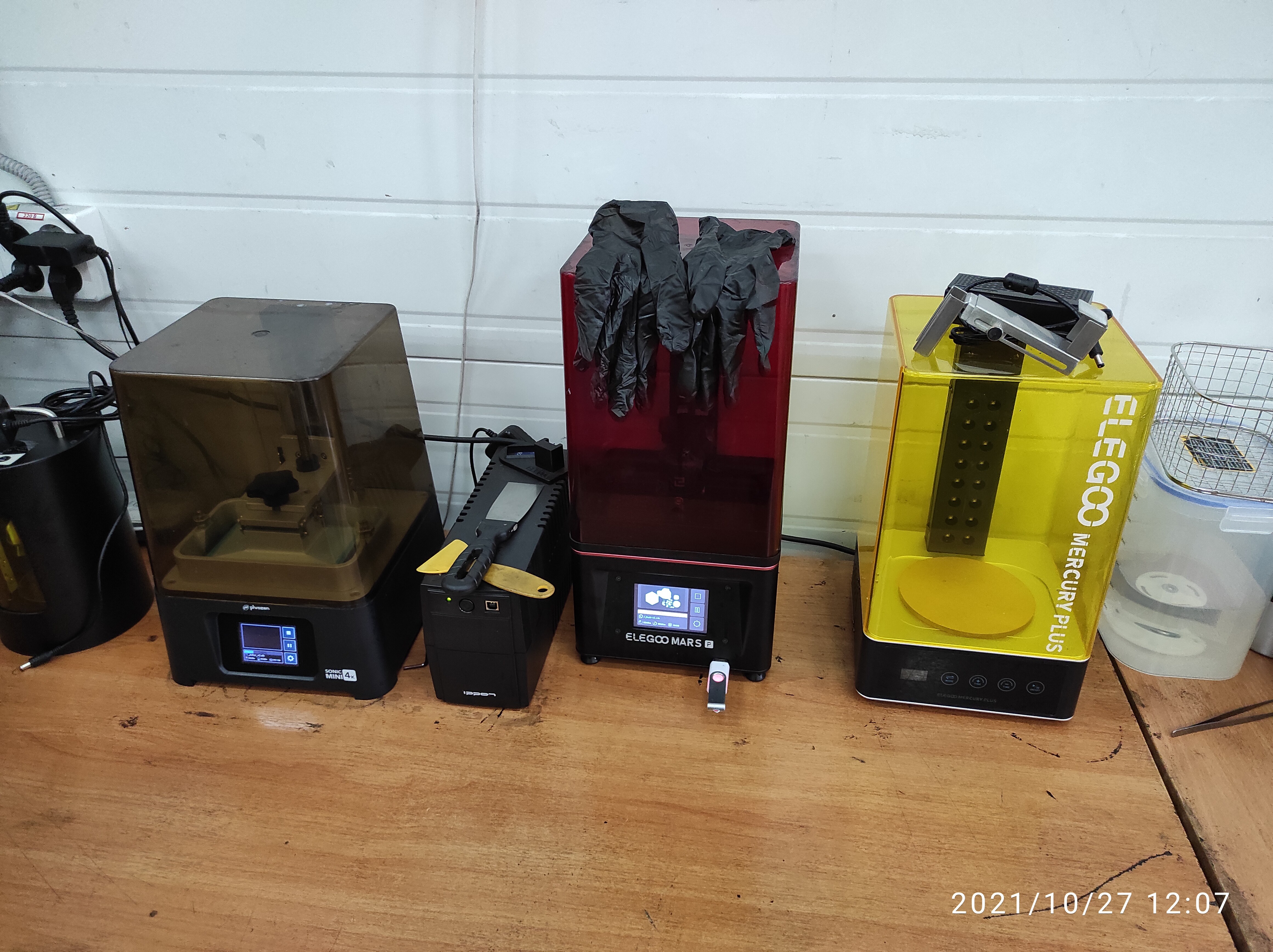 В начале 2021 года ооочень хотелось экспериментов, поэтому с волнением и ожиданием пришел к начальству со словами "а давайте купим фотополимерник". К сожалению покупать или спонсировать на покупку не торопились и дождавшись очередной распродажи на Али был куплен Elegoo Mars pro (на фото красный).