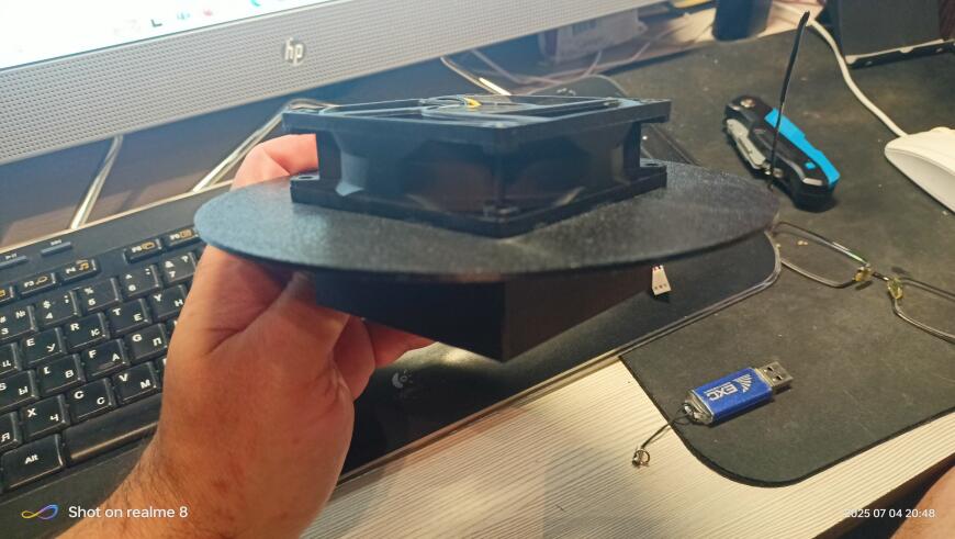 За основу взят БУ фильтр от очистителя воздуха Xiaomi Mijia Air Purifier 4. Верхний корпус с отсеком под кассету для угольного фильтра изготовлен на 3д принтере, вдув бу кулер с компа, но как показала практика слабоват, заказал вытяжной вентилятор (https://ozon.ru/t/L4YqleU) и регулятор оборотов. Распечатал кольцо в которое впресовал втулки на М3 и приклеел к корпусу фильтра (верхняя часть съёмная получилась). Пока фильтр дораатываю, скачать макеты можно тут https://3dtoday.ru/3d-models/sport-and-rest/accessories/filtr-dyma