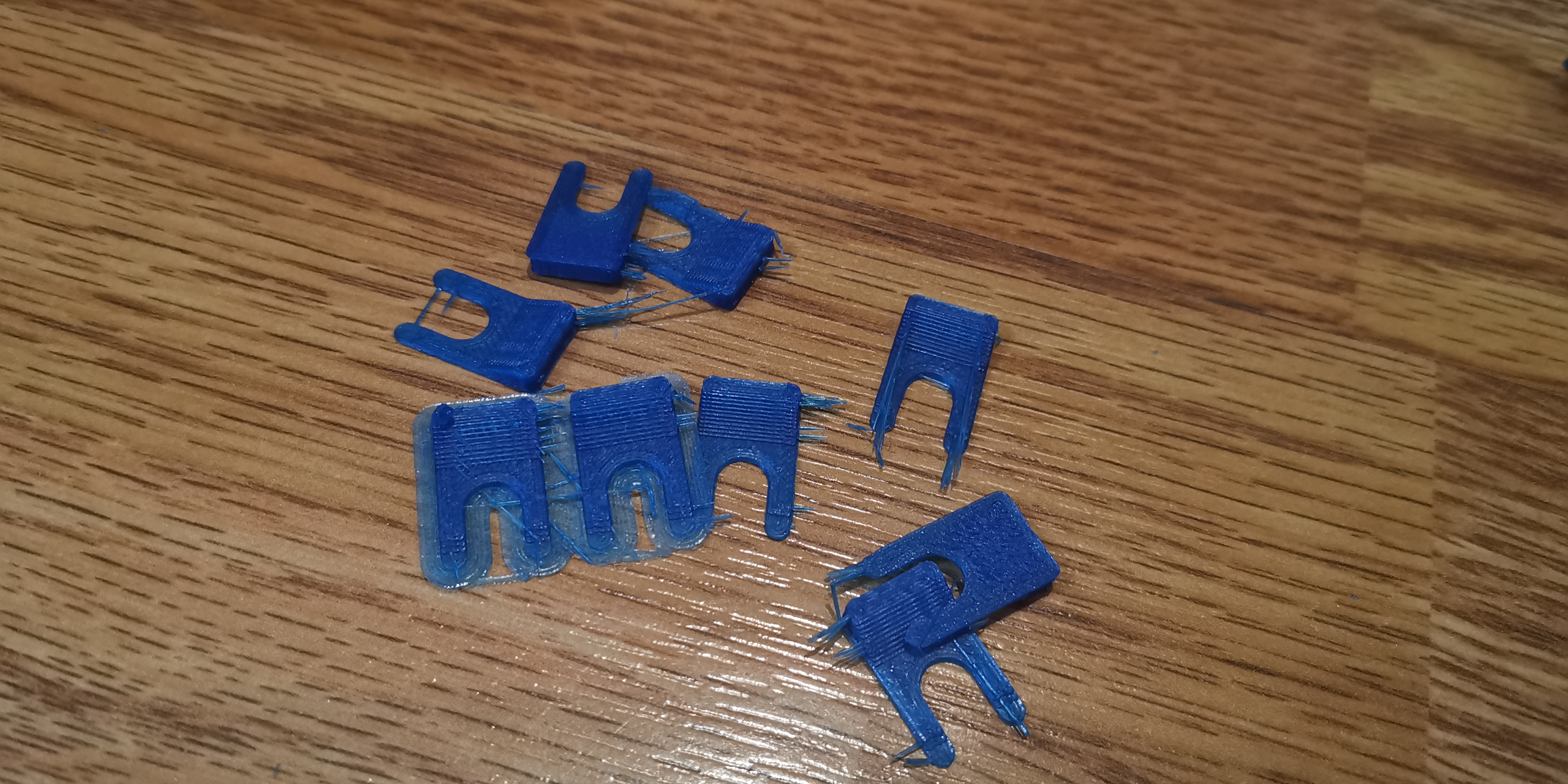 Опять же из всякой не нужности распечатал держатели самого нити на катушке под определённую профиль. Я распечатал их просто кучу опять же из PLA пластика, который для этих нужд совершенно не подходит так как не держит нагрузки и нить не держит. 1.75mm Filament Clip