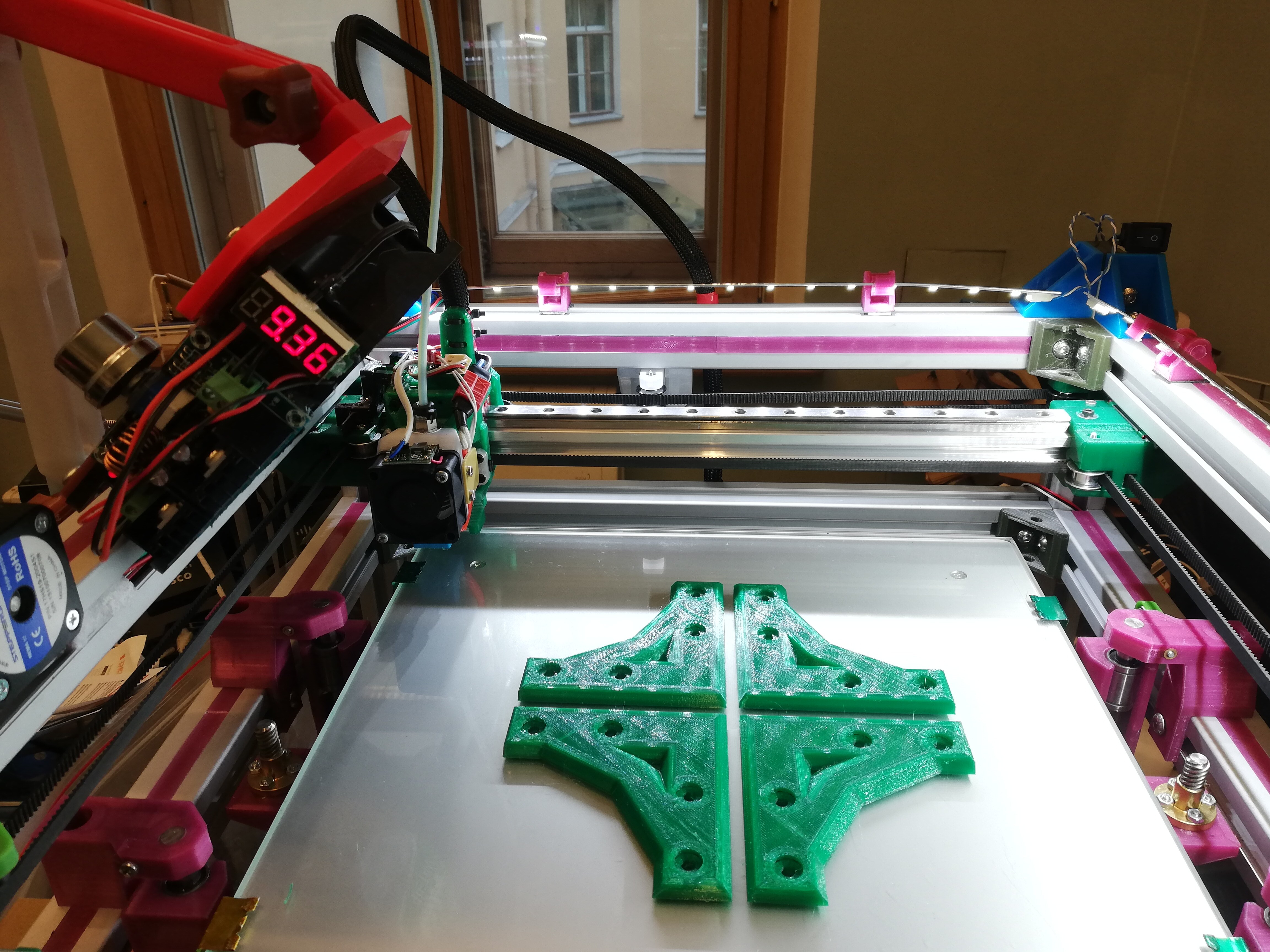 Если включить обдув на полную (вой стоит просто демонический) то температура с 75С падает до ~55С когда уже можно снять деталь со стола минуты за полторы, а естественным образом остывание длится куда как дольше. Причём с обдувом по сути остывает ускоренно только верхний слой стекла и последующий выход на рабочую температуру для запуска следующей печати происходит куда как быстрей.