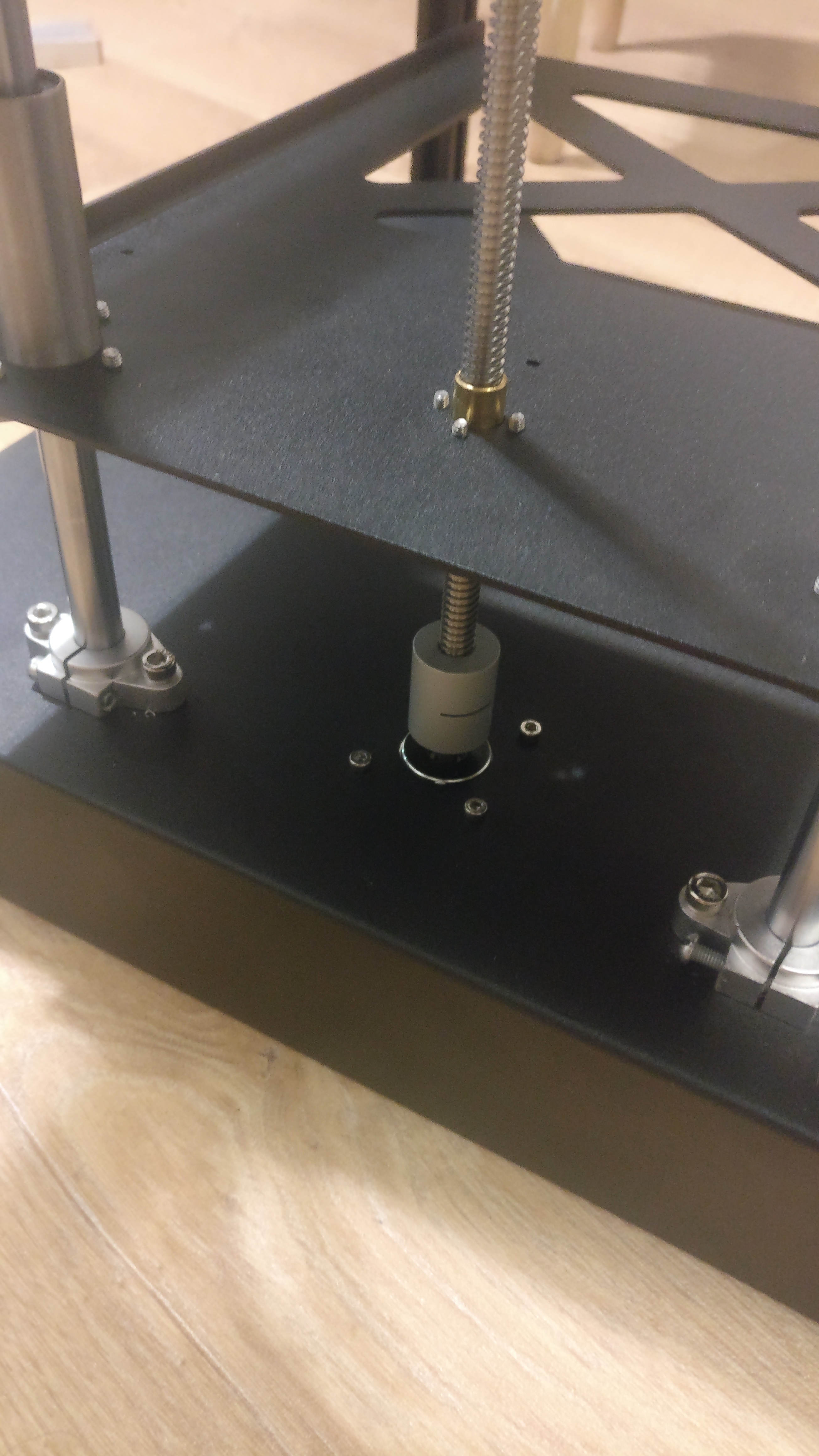 Диаметр муфты под мотор так себе сделан. Винт фиксации закручивается до упора, а муфта не сжимается и вал прокручивается. Ерунда. Пока вышел из положение зажатием в тиски этой муфты и кое как прикрутил вал мотора. Для запуска печати делал малой кровью на скорую руку.