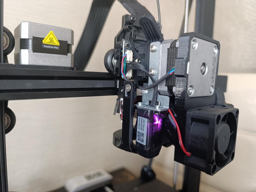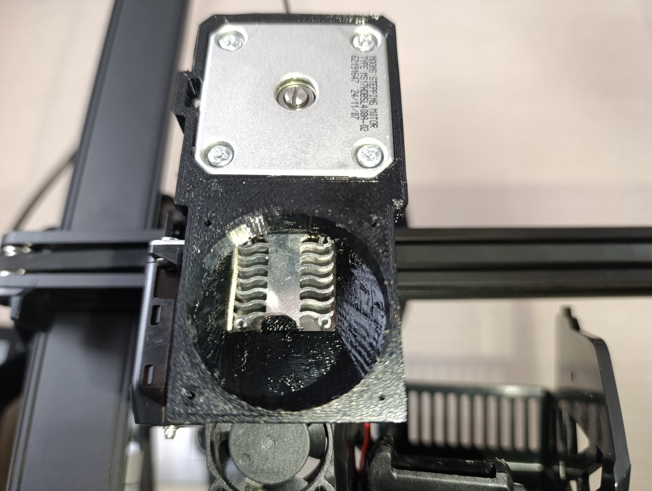 Напечатал всем известный комплект кронштейнов для 5015 и 4020, получил вентиляторы начал ставить, а оказалось на этих новых принтерах другой шаговый двигатель и кронштейн хотенда никак не закрепить, там нет резьбы. Готовых решений к сожалению я не нашел. Пришлось вечер просидеть в Компасе и вот посмотрите какое чудо я сотворил. К принтеру вообще не прикручивается - просто одевается. 😁 Еще хотел карман для вентилятора сделать, что бы вообще без болтов и саморезов, но как-нибудь потом. Есть даже "шторка" что бы горло и нагреватель не продуло. Печатал из PETG.
