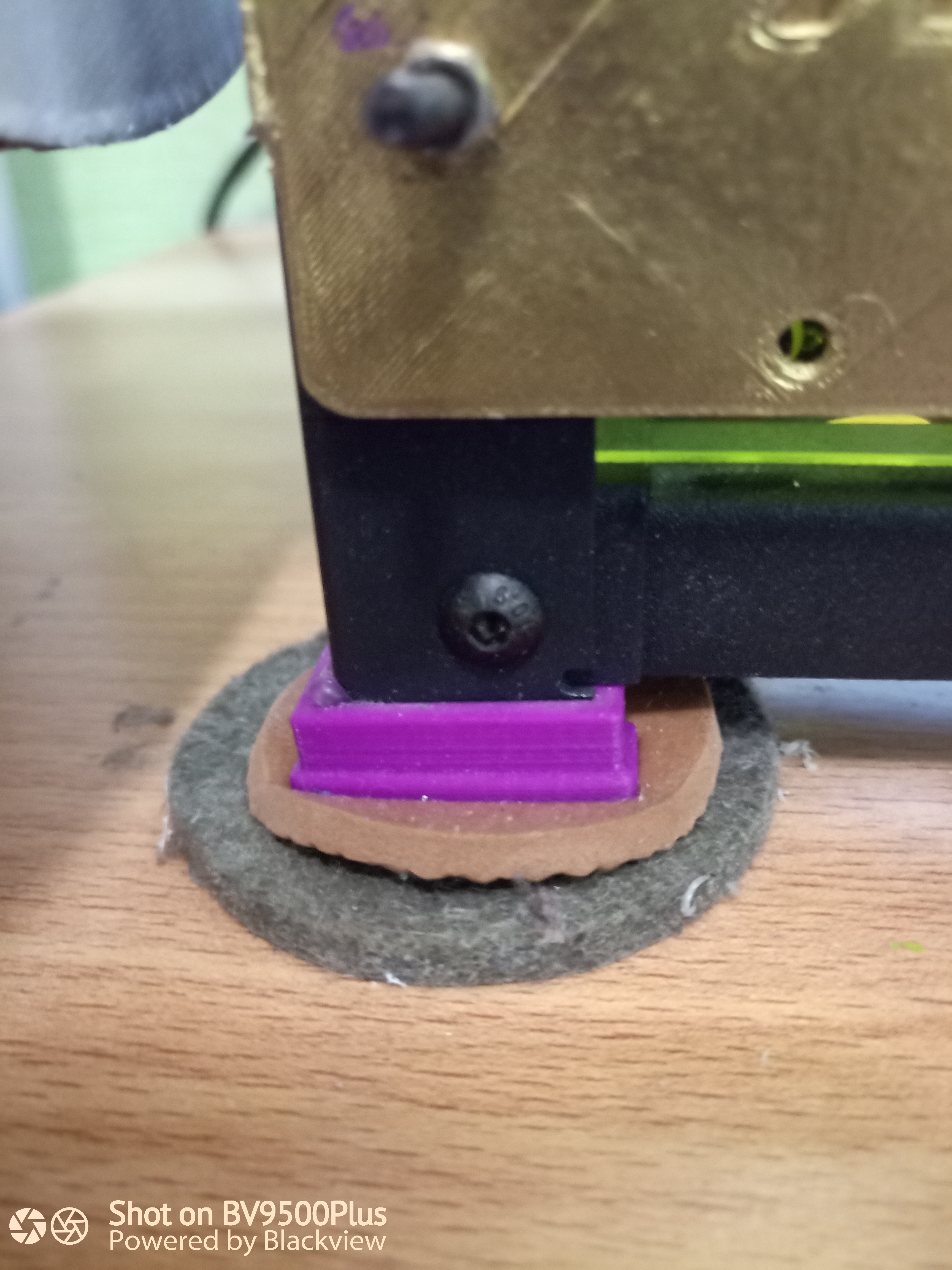 Распечатал ножки и купил в магазине Леруа накладки с односторонней липучкой. Войлочные приклеил к столу , а сверху приклеил резиновые и поставил сверху принтер.