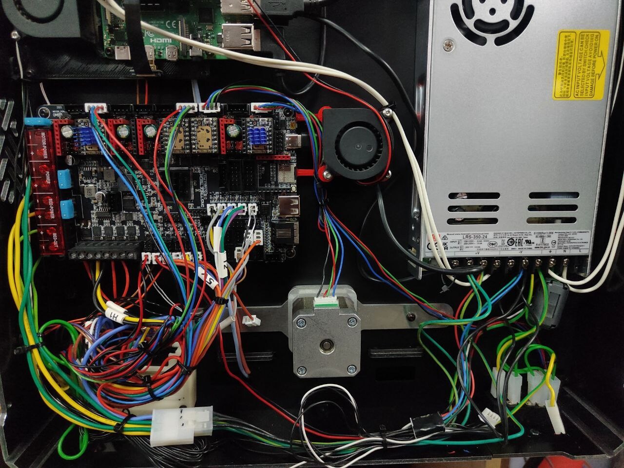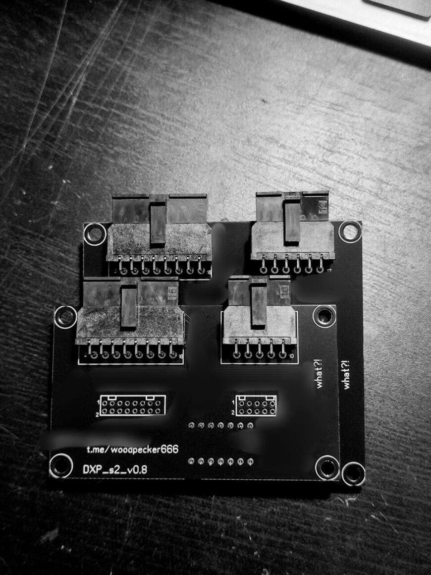 Очевидно что прошивку на первую серию править больше не будут, нужно переходить на другую. Я ни разу не схемотехник, так что изучать родные платы даже не стал (почти). Было заказано несколько плат с али, я снял со своей хпрошки пг и вооружился мультиметром...Спустя еще пол года появилась первая версия платы, там было много проводов, снаружи к ней подключалась реле на соплях... В процессе экспериментов я спалил один октопус, но меня уже завлекла идея, тем более что принтер ожил, начал печатать и даже переключать голову, а я погрузился в форумы клипера.