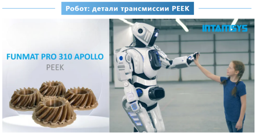 Качество силовой установки и трансмиссии напрямую влияют на производительность, точность движений, скорость и надежность. Шестерни из PEEK напечатаны на 3D-принтере Intamsys Funmat Pro 310 Apollo всего за восемь минут.