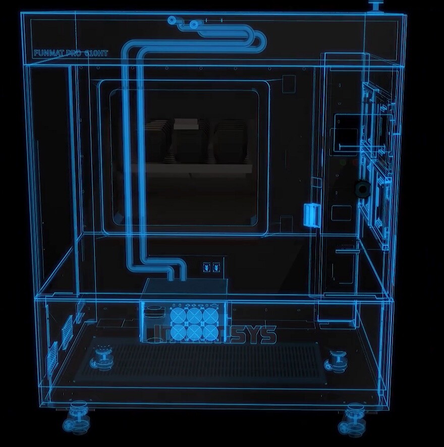 Funmat Pro 610HT оснащен рабочей камерой с активной регулировкой фоновой температуры в пределах до 300°C. Такой уровень необходим для корректной кристаллизации и набора прочности некоторых суперконструкционных термопластов, например полиэфирэфиркетона (PEEK) или полиэфиркетонкетона (PEKK). Высокая и стабильная температура по всему объему — 610х508х508 мм — обеспечивает максимальную когезию слоев, предотвращает коробление и растрескивание и помогает снимать внутренние напряжения, тем самым повышая итоговую прочность изделий.